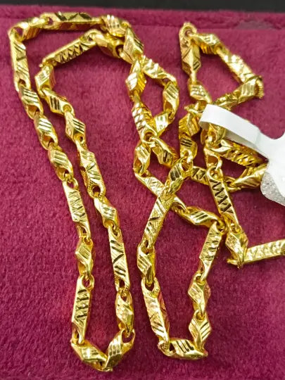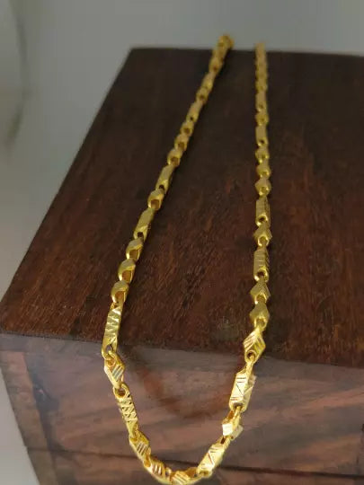 Crafted from genuine 22kt 916 solid gold, this chain is handmade to perfection, showcasing the artistry of traditional Indian jewelry. Each piece is meticulously crafted by skilled artisans, reflecting the rich cultural heritage and exquisite craftsmanship of India.
