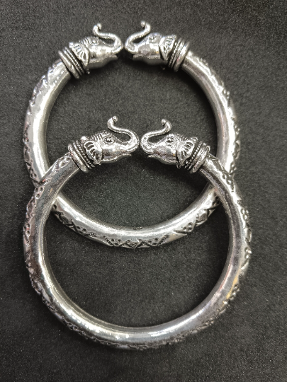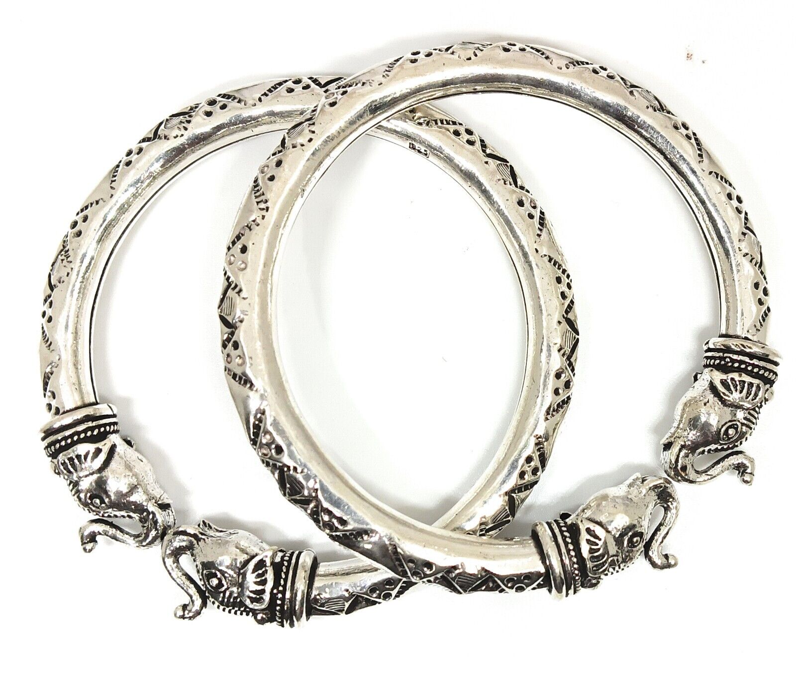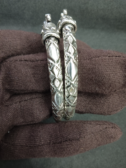 Introducing the 925 Solid Silver Antique Polished Handmade Hollow Bangles, an exquisite piece that embodies the essence of true Indian Rajasthani culture. This beautifully engraved masterpiece features intricate detailing and an oxidized finish, giving it a rustic charm and timeless elegance. With a diameter of 2.25 inches and a weight of approximately 60 grams, this openable bangle is both stunning and practical, making it easy to wear and perfect for any occasion.