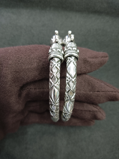 Embrace the elegance and cultural heritage of the 925 Solid Silver Antique Polished Handmade Hollow Bangles, a timeless piece that brings a touch of Rajasthani tradition to your jewelry collection.