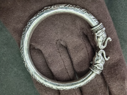 Inspired by the enchanting moonlit nights and the rustic elegance of vintage jewelry, this Sterling Silver Kada Bracelet is a true masterpiece of artisan craftsmanship. Meticulously handcrafted by skilled artisans, it reflects the beauty of handcrafted jewelry and adds a touch of mystique to any woman's wardrobe.