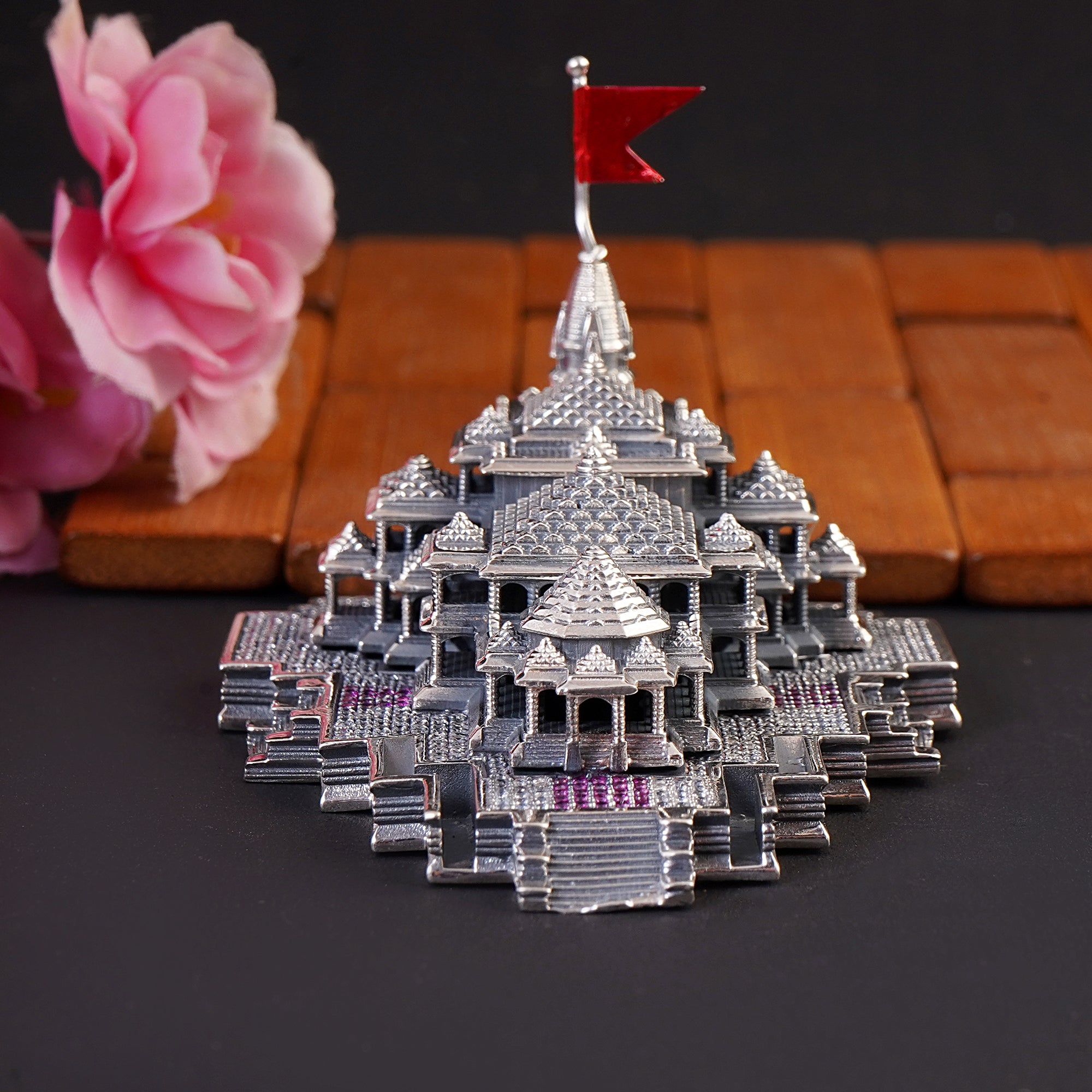 925 silver Ram Mandir Ayodhya Replica with A.D. stone