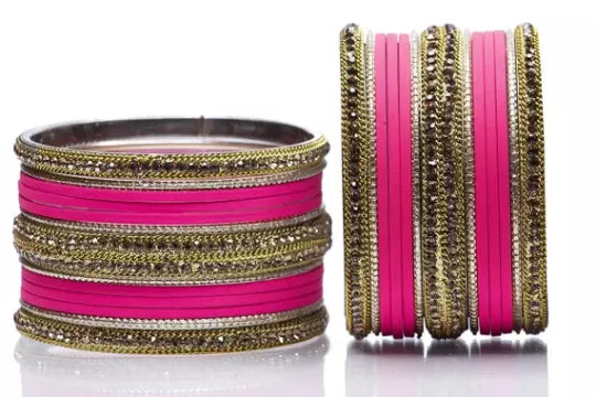 Bridal Kundan Bangles Set Plain Metal Charm Bracelet For Women Indian