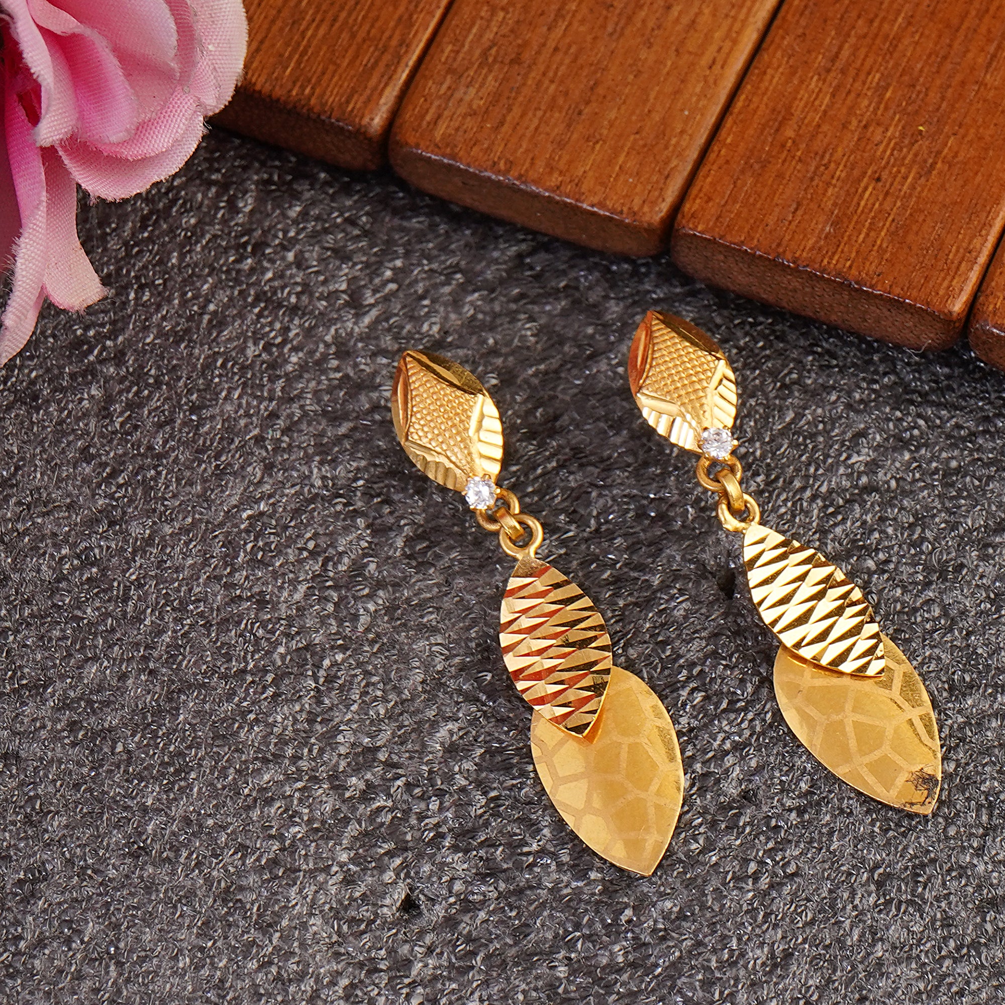 Enchanted Gold Elegance - Handmade 22kt Yellow Gold Dangler Earrings for a Magical Anniversary