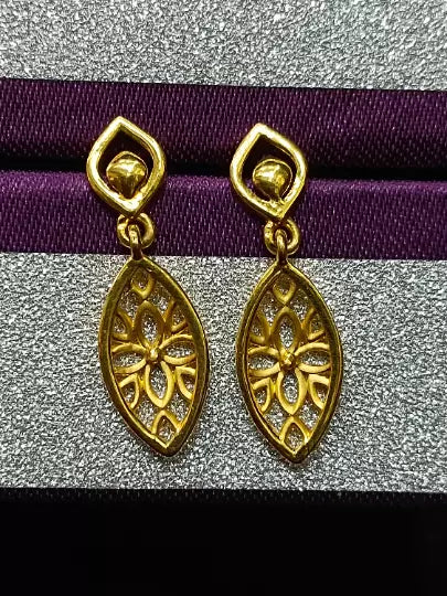 Gold Earring Women's Earrings Handmade Stud Earrings 22k Yellow Gold Dangler