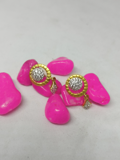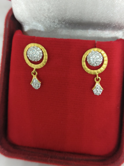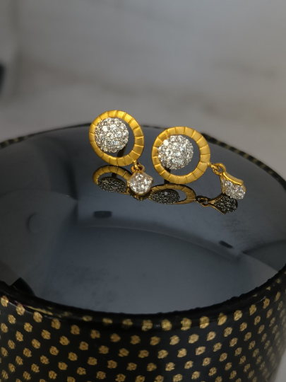 Gold Stud CZ Earring Women's Earrings Handmade Stud Earrings 22kt Yellow Gold Stud Earring Anniversary Gift Ideas Classy Screw Back Earrings