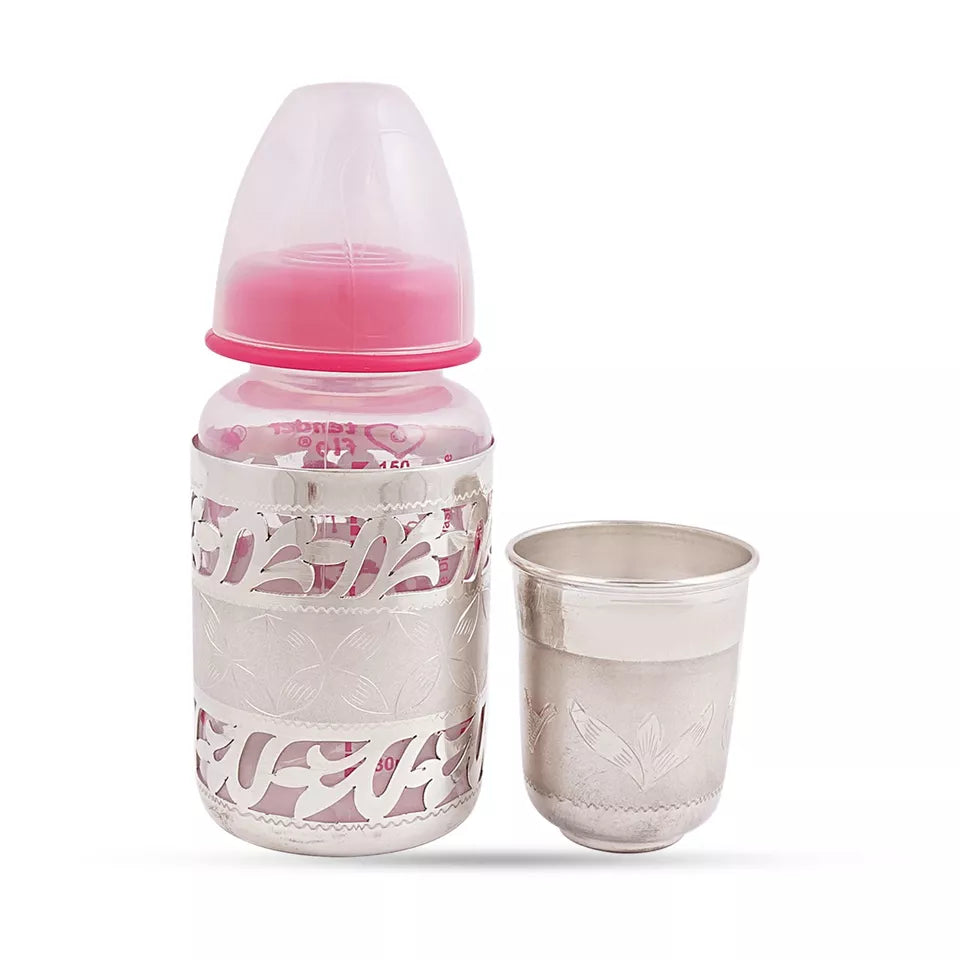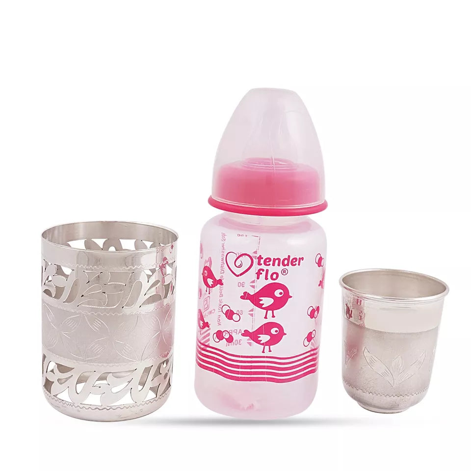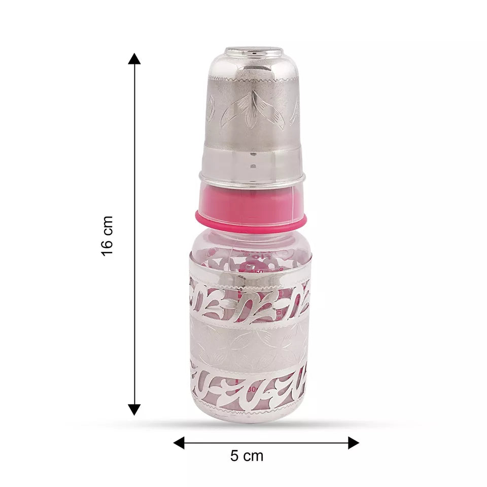 Sterling silver Baby feed bottle small silver glass